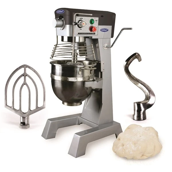 Les batteurs de General sont conçus pour une utilisation intensive. Ce batteur sur socle est idéal pour toute installation de services alimentaires nécessitant un malaxage fréquent, par exemple les restaurants, les boulangeries, les supermarchés, les écoles, les universités et plus encore. Il est suffisamment robuste pour la préparation de pain, de pâtisseries, de pâte à pizza, de mélanges, de garnitures et de toutes sortes d’autres préparations alimentaires. Ce modèle possède un bol pouvant contenir 28,4 litres.Cadre robuste en métal coulé3 vitesses de malaxage1 cuve de 120 tasses, 120 VoltsMoteur de 1100 Watts entièrement fermé, lubrifié en permanenceL’interrupteur de surcharge éteint le batteur sur socle pour éviter la surchauffe.Caractéristiques de sécurité standards : grille protectrice verrouillable pour cuve, dispositif d’élévation du récipient, fonction de protection contre la surcharge du moteurAccessoires compris : batteur, crochet pétrisseur, fouet et cuve en acier inoxydable