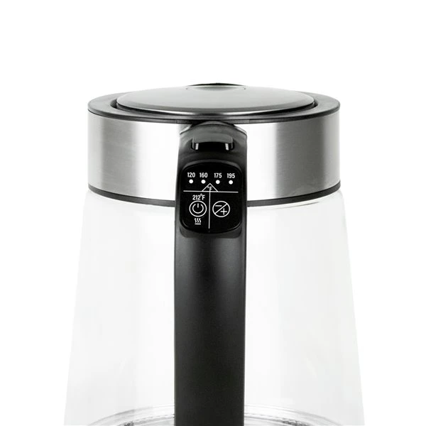 Faites bouillir de l’eau plus rapidement avec la bouilloire électrique numérique de 1,7 L à ébullition rapide Kalorik. Dotée d’une puissance de 1750 watts, cette bouilloire numérique utilise la technologie à ébullition rapide et peut contenir jusqu’à 7 tasses d’eau. Elle est idéale pour le thé et le café soluble. La fonctionnalité du contrôle numérique de la température offre 4 réglages : 120 °F, 160 °F, 175 °F, 195 °F et une fonction (ébullition) pour s’adapter aux températures d’infusion spécifiques de chaque thé. De plus, une lumière DEL illumine la bouilloire pendant l’ébullition. Elle comprend également une commande de thermostat STRIX, une protection contre l’ébullition et un arrêt automatique.Capacité de 1,7 L, peut bouillir jusqu’à 7 tasses d’eau1750 watts de puissance et comprend la technologie à ébullition rapideCinq lumières DEL changent de couleur en fonction de la températureFiltre amovible lavable