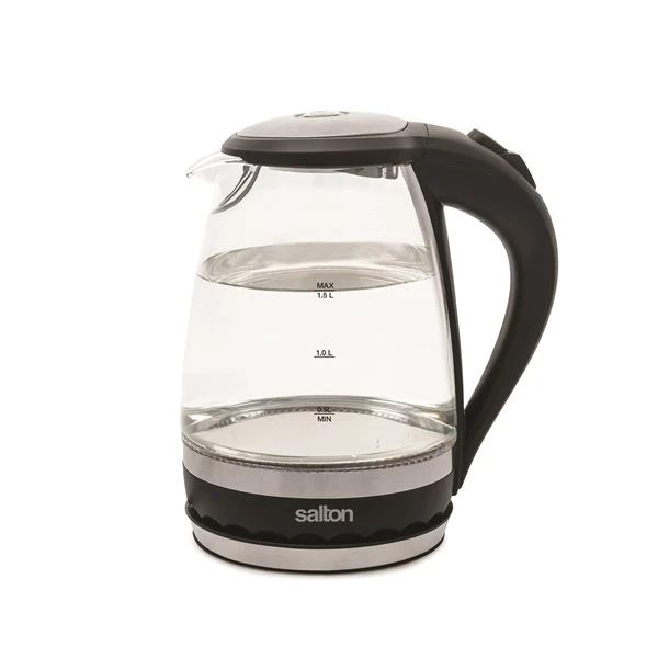 Ajoutez une touche ludique à votre eau avec une brillante lueur bleue. Cette bouilloire Salton est la solution parfaite pour les petits espaces. Élégante, la bouilloire est faite de verre thermique résistant aux chocs, et d’acier inoxydable brossé qui fait de cette bouilloire une solution sécuritaire et économique pour faire bouillir de l’eau. Le couvercle à charnière et l’élément chauffant dissimulé permettent le nettoyage rapide et facile tandis que l’indication du niveau d’eau de chaque côté de la bouilloire et la base pratique à 360 ° permettent une utilisation de la main gauche comme de la main droite. Le rangement pratique du cordon élimine le désordre sur le comptoir et la conception élégante illumine votre cuisine.Éclairage à DEL bleu élégantFiltre Aquascreen (MD) et couvercle à charnièreLa bouilloire peut être déposée dans n’importe quel sens sur sa base