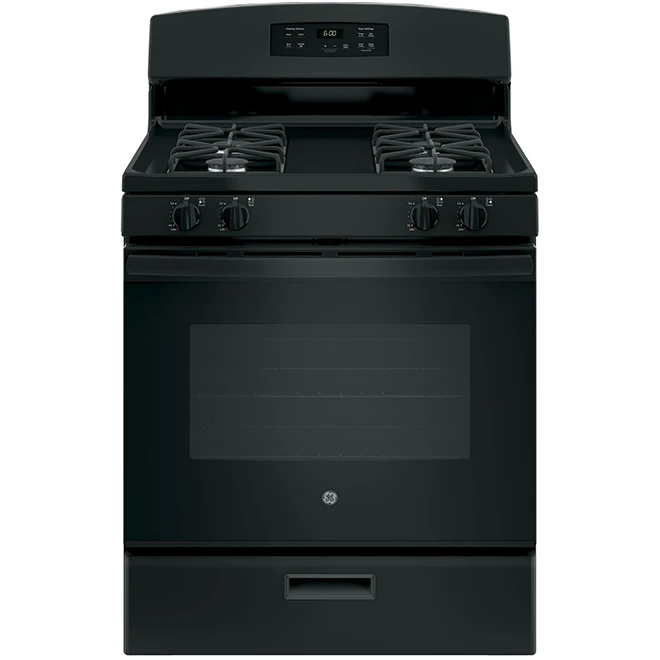Cuisinière à Gaz Autoportante GE Appliances, 30 Po, 5,0 Pi³, Noire, Commande électronique