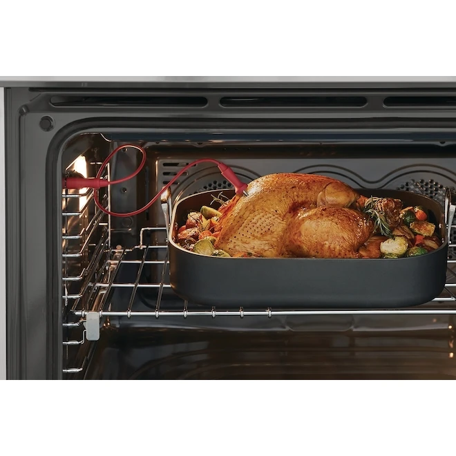 La cuisinière au gaz Frigidaire Professional de 36 po avec convection véritable permet une cuisson plus rapide et plus uniforme sur plusieurs grilles grâce à la circulation puissante de l’air chaud dans la cavité du four. De plus, la surface de cuisson à six brûleurs offre une flexibilité ultime avec deux brûleurs puissants qui passent rapidement de l’ébullition au mijotage – conçus pour répondre à tous vos besoins de cuisson. Cette cuisinière est également équipée de boutons DEL rétroéclairés et de notre finition en acier inoxydable smudge-proof® qui résiste aux empreintes digitales, ce qui facilite le nettoyage. Obtenez une cuisson plus rapide et plus uniforme sur plusieurs grilles grâce à un puissant ventilateur de convection et à un troisième élément chauffant qui fait circuler l’air chaud uniformément dans tout le fourLa surface de cuisson à six brûleurs offre une souplesse de cuisson optimale grâce à deux brûleurs puissants qui passent rapidement de l’ébullition au mijotageLa sonde de température surveille et alerte lorsque vos aliments sont prêtsObtenez une ébullition puissante ou un mijotage doux sans changer de brûleur