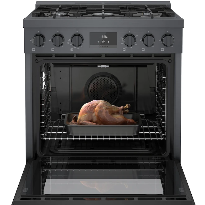 Cuisinière Au Gaz Autoportante Bosch, Série 800, 5 Brûleurs, 30 Po, Acier Inoxydable Noir