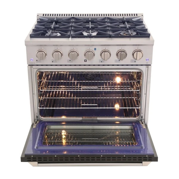 Cuisinière Au Gaz Autoportante De 36 po Par KUCHT Avec 6 brûleurs, Four à Convection De 5,2 pi³ Et Porte Noire