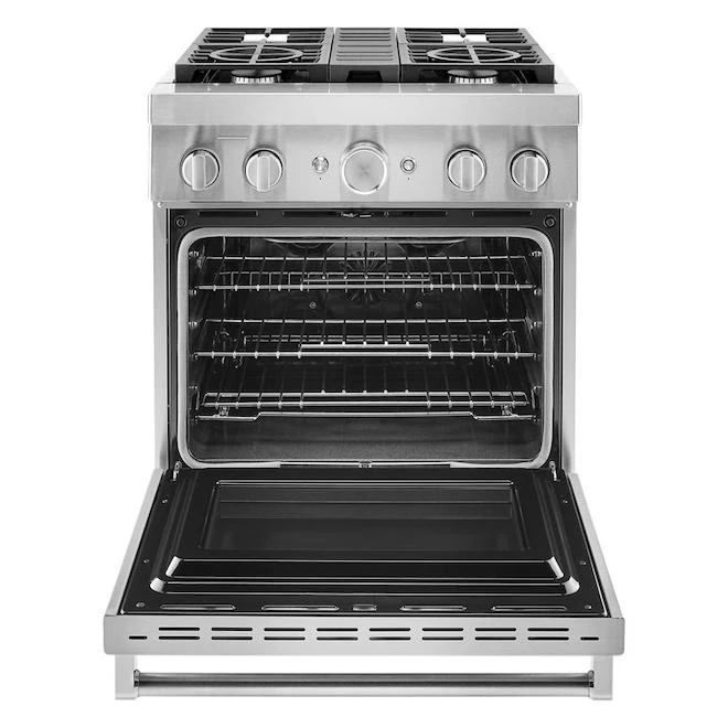 Cuisinière Biénergie KitchenAid, 4 Brûleur, 30 Po L., Acier Inoxydable