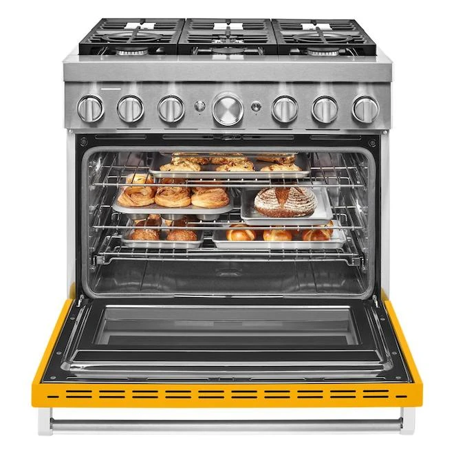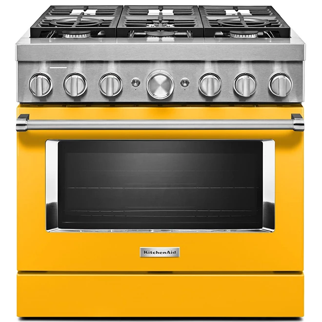 Cuisinière Biénergie KitchenAid, 6 Brûleurs, 36 Po L., Poivron Jaune, Autoportante