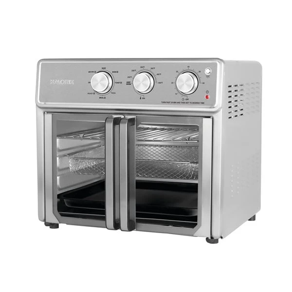 Fonctionnalité polyvalente : friteuse à air chaud, four, gril, four à pizza, rôtissoire, grille-pain, réchaud et grilloirLa technologie Turbo MAXX et la puissance de 1700 watts permettent de cuire les aliments en une fraction du temps, aucun préchauffage requisFrit à l’air chaud les aliments jusqu’à ce qu’ils soient délicieusement croustillants et dorés, avec peu ou pas d’huileCommandes simple avec durée et température réglablesCapacité de 24,6 L pouvant contenir une dinde de 12 L, une pizza de 12 po ou 9 tranches de painPortes françaises qui s’ouvrent à une main pour prévenir les gouttes et les brûluresÉclairage intérieur pour surveiller la cuisson facilementLes accessoires comprennent : un panier de friture, une grille de cuisson, un plateau de cuisson, un ramasse-miettes et une poignée de plateau