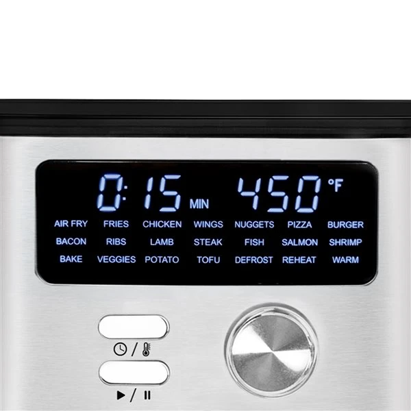 Friteuse à air chaud multifonctionnelle permettant de frire à l’air chaud, cuire, rôtir, griller, décongeler, réchauffer et garder au chaudLa technologie Turbo MAXX et la puissance de 1600 watts permettent de cuire les aliments en une fraction du temps, aucun préchauffage requisFrit à l’air chaud les aliments jusqu’à ce qu’ils soient délicieusement croustillants et dorés, avec peu ou pas d’huile21 préréglages intelligents garantissent des résultats infaillibles pour une variété de platsCommandes numériques intuitives avec durée et température réglablesIdéal pour des frites croustillantes, des rondelles d’oignon, du poulet frit, des crevettes, des bâtonnets de mozzarella, des légumes, de la pizza et plus encoreLe panier et le dessous-de-plat à revêtement antiadhésif double sont amovibles et lavables au lave-vaisselle
