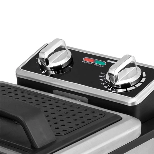 Préparez vos repas préférés avec la friteuse avec filtration à l’huile de Kalorik. Le système de filtration d’huile unique nettoie et vidange l’huile pour une utilisation future. L’huile filtrée est contenue dans un récipient séparé pour une utilisation facile. Vous pourrez contrôler le temps de cuisson et la température jusqu’à 190 °C/375 °F. La capacité de 4 L est idéale pour les familles ou les repas copieux.Aucun dégât : l’huile s’écoule dans un récipientÉconomisez temps et argent en réutilisant l’huile filtréePréparez des plats frits de qualité restaurant à la maisonCapacité : 4 L/4,2 qt/18 tasses, idéal pour les familles ou les repas copieuxGarde l’huile plus propre plus longtempsTournez le cadran pour faire sortir l’huile et la filtrer dans le réservoir d’huile propreContrôle de temps et température jusqu’à 375 °F/190 °CPuissance de 1800 W pour une récupération rapide de la chaleur