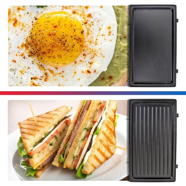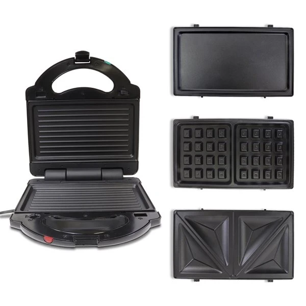 Tellement de possibilités! Faites de délicieux sandwichs au fromage grillé, des gaufres belges, des omelettes et des sandwichs « petit-déjeuner » avec ce gaufrier de Total Chef.L’appareil peut être utilisé comme un gaufrier, un grille-sandwich, un presse-panini ou une plaque chauffante avec ses 4 plaques interchangeablesÉléments chauffants à 2 côtés qui chauffent rapidement et qui cuisent uniformément de chaque côtéConception compacte et portative avec poignée pour un rangement facile