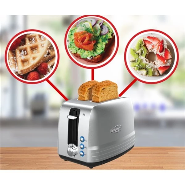 Le grille-pain pour 2 tranches Select par Brentwood à fentes extra larges de 850 W peut griller du pain, des bagels, des gaufres, des pâtisseries et plus encore. Comprends un mode bagel, décongélation et annulation. Comprends également 7 réglages d’intensité, un plateau ramasse-miettes amovible et un levier de levage supplémentaire. Le corps en acier inoxydable brossé a un style moderne qui s’adapte à toutes les cuisines.Levier de levage supplémentairePlateau ramasse-miettes amovibleBoîtier Cool TouchCertification cETL