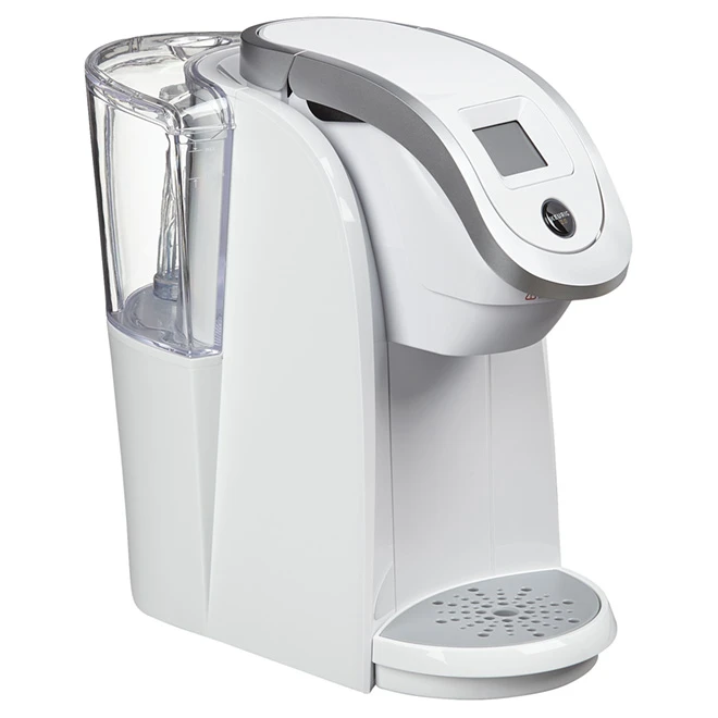 Préparez de délicieuses boissons chaudes en appuyant sur un seul bouton avec cette cafetière K200 de Keurig. Que vous ayez envie d’une seule tasse ou d’une pleine carafe, cette cafetière est conçue pour infuser des boissons en portion individuelle ou en verseuse (vendue séparément). Elle est compatible avec les capsules K-Cup(MD), K-Mug(MC), et K-Carafe(MC) et comprend une poignée de filtre à eau et une cartouche de filtre à eau pour un goût frais et savoureux à tout coup. La fonction de contrôle de l’intensité vous permet de préparer du café comme vous l’aimez, et le réservoir contient jusqu’à 1,2 litres (40 oz) d’eau. La machine à café est également pourvue d’un mode d’économie d’énergie, d’une fonction d’arrêt automatique et d’un écran tactile facile à utiliser. La couleur blanche de cette cafetière rehaussera à merveille votre décor de cuisine.