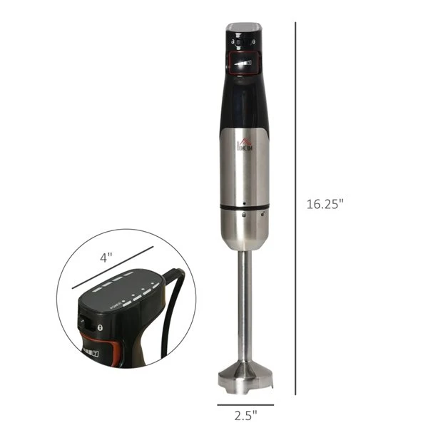 Mélangeur 4-en-1 HomCom De 400 W Avec Contrôle De L’impulsion Et Vitesse Ajustable, Noir Et Argent, Ens. De 6