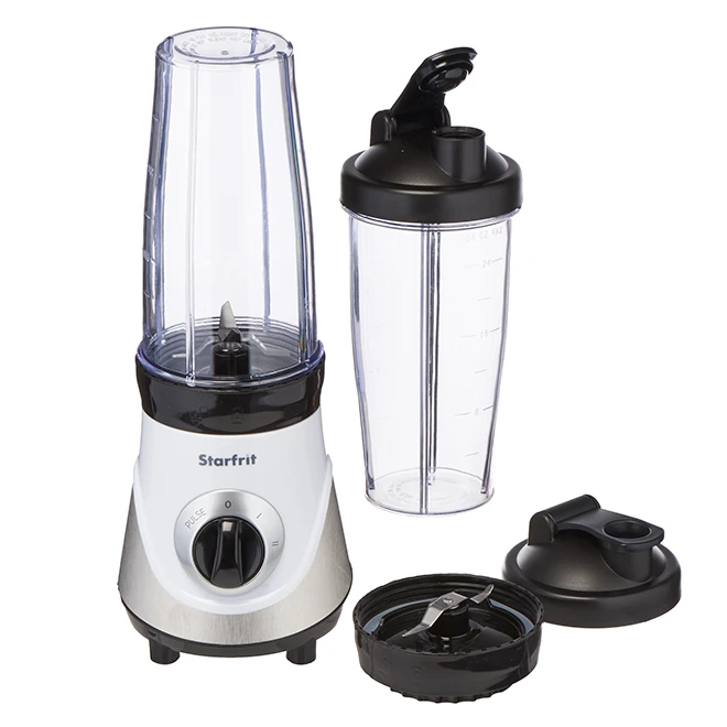 Mélangeur Personnel Starfrit à 3 Vitesses Avec 2 Contenants De 28 Oz, 300 W, Blanc