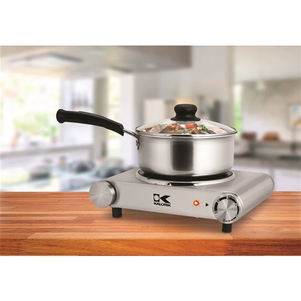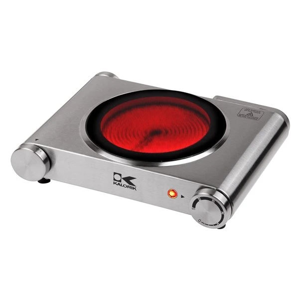 Rendez votre vie plus simple avec la plaque de cuisson de vitrocéramique Kalorik. Cet appareil pratique et portable est parfait pour utilisation dans une chambre de dortoir, un appartement, en voyage, ou pour plus de surface de cuisson dans votre cuisine. Cette plaque de cuisson est composée d’un corps en acier inoxydable et d’une plaque de cuisson en vitrocéramique très facile à nettoyer. Son élément chauffant infrarouge atteint des températures élevées instantanément tout en économisant du temps et de l’énergie. La plaque de cuisson dispose d’un thermostat réglable pour ajuster la puissance rapidement et avec précision. Cet appareil dispose aussi de pieds antidérapants. Avec son élégante apparence et son style moderne, cette plaque de cuisson convient parfaitement à tous types de cuisines!Corps en acier inoxydablePlaque chauffante en vitrocéramique de haute qualitéÉlément chauffant infra-rouge de haute technologieThermostat réglable et bouton On/OffRéglage de la puissance progressifProtection thermofusible pour une utilisation sûrePieds antidérapantsPour utilisation avec tout types de casseroles