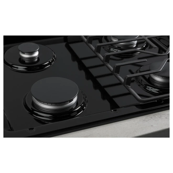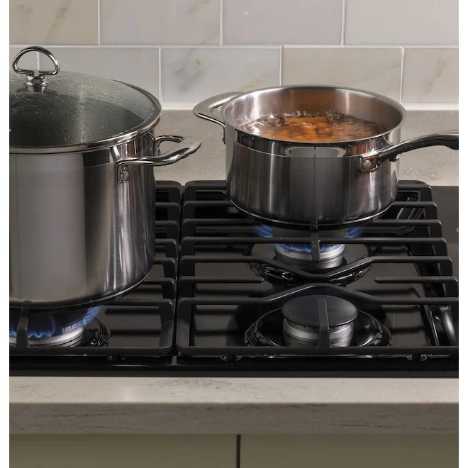 Fonctionnelle et pratique, cette surface de cuisson encastrée à gaz de 30 pouces GE Appliances est munie de 4 brûleurs scellés dont un brûleur puissant de 15 000 BTU qui fournit une chaleur élevée et un brûleur de mijotage précis pour les sauces et aliments délicats. Sa conception à encastrement profond permet de contenir les dégâts pour un nettoyage plus facile et ses grilles robustes et durables peuvent être lavées au lave-vaisselle pour plus de commodité. Ce produit est doté d’un fini noir élégant et comprend la garantie GE Fits Guarantee qui assure un ajustement parfait lorsqu’une surface de cuisson similaire est remplacée. Le brûleur de 15 000 BTU produit une chaleur élevée quand vous en avez besoinConception profondément encastrée qui aide à contenir les déversements afin d’éviter de salir la surfaceLa garantie GE Fit assure une installation identique lorsque vous remplacez une table de cuisson similaire4 brûleurs scellés rendent le nettoyage rapide et facileGrilles robustes lavables au lave-vaisselle pour vous faciliter la tâche