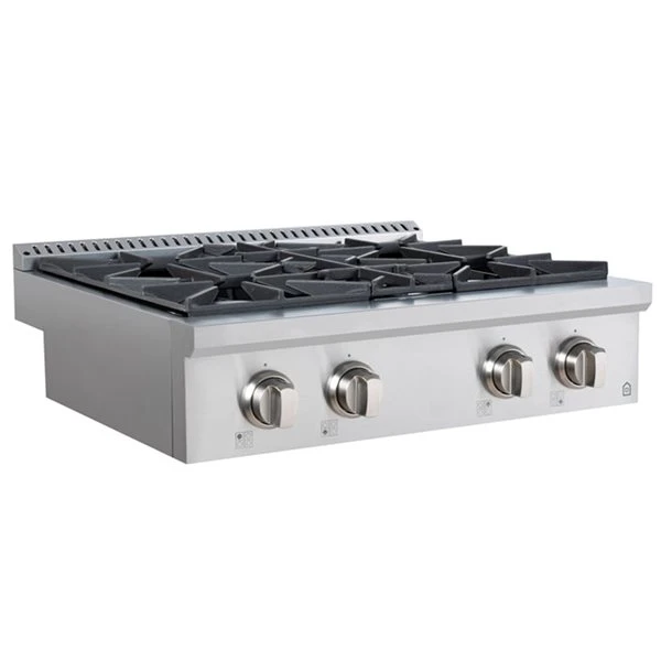 Cette surface de cuisson de 30 po est dotée de boutons de commande et d’une conception qui donnera à votre cuisine un aspect professionnel. Ses brûleurs vous permettent de passer d’une chaleur élevée pour faire bouillir, frire ou faire revenir vos aliments, à une chaleur plus faible pour faire mijoter vos sauces les plus délicates. La plaque chauffante / grille amovible est parfaite pour préparer de gros repas.Construction en acier inoxydableGrilles en fonte4 brûleurs DEFENDI fabriqués en Italie : 2 x 9000 BTU, 2 x 15 000 BTUAllumage électronique et fonction de rallumage automatiqueBase en émail noir résistant aux rayuresGaz naturel (trousse de conversion au gaz propane incluse)Homologuée ETL120 V ; 141,1 kW ; 60 Hz