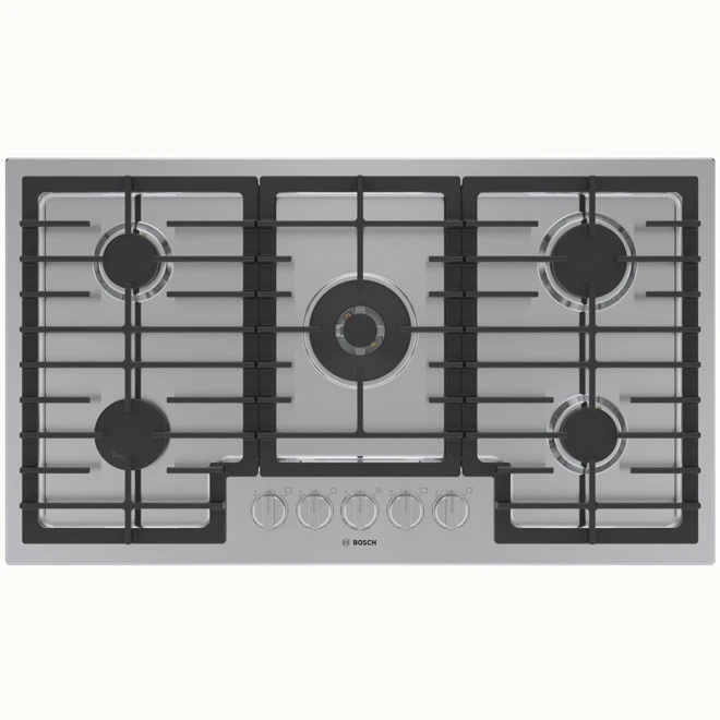 Surface De Cuisson Au Gaz De 36 Po Série 800 De Bosch, 5 Brûleurs, Acier Inoxydable