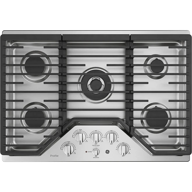 Surface De Cuisson Au Gaz GE Profile, 5 Brûleurs, 30 Po, 18 000 BTU, Acier Inoxydable