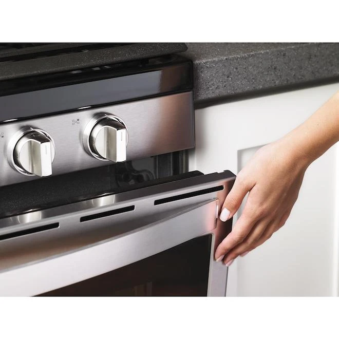 Préparez le souper en un rien de temps grâce à cette cuisinière au gaz Whirlpool. La fonction Frozen Bake(MC) vous permet de sauter l’étape du préchauffage afin de préparer vos plats favoris plus rapidement. Le four à convection utilise un ventilateur qui élimine les zones froides en faisant circuler l’air chaud uniformément. Vous obtenez ainsi d’excellents résultats et pouvez cuire les plats sur n’importe quelle grille du four. Vous pouvez aussi éliminer les dégâts facilement grâce aux grilles à charnières EZ-2-Lift(MC) qui n’ont pas besoin d’être retirées pour être nettoyées. Le four est également autonettoyant afin de vous alléger la tâche. Accédez rapidement aux liquides renversés sur la table de cuisson grâce à nos grilles en fonte à charnières EZ-2-Lift(MC), une première dans l’industrie. Leur conception vous permet d’essuyer le dessous sans les retirer; pour un nettoyage plus approfondi, les grilles et les boutons vont au lave-vaisselleÉvitez le préchauffage et faites cuire vos plats préférés surgelés, comme la pizza et la lasagne, plus rapidement grâce aux réglages préprogrammés qui ajustent automatiquement le temps de cuissonCuisez vos plats de manière uniforme grâce à un ventilateur situé à l’arrière du four qui distribue l’air chaud de manière plus efficace; cela permet d’éliminer les zones froides afin de pouvoir cuire sur n’importe quelle grilleMettez rapidement le dîner sur la table grâce à ce brûleur qui génère la chaleur élevée nécessaire pour saisir et faire bouillir rapidementCe cinquième brûleur permet de placer facilement de grandes plaques et d’autres batteries de cuisine plus longues afin qu’elles chauffent uniformément sur la cuisinièreTechnologie autonettoyante AquaLift(MD)Préparez des plats cuits uniformément grâce au capteur qui surveille la température du four et ajuste les éléments de cuissonGagnez du temps avec un préchauffage 20 % plus rapide : un ventilateur arrière combiné à l’utilisation de tous les éléments permet de chauffer le four rapidementRetirer les boutons de commande et mettez-les au lave-vaisselle pour faciliter le nettoyage